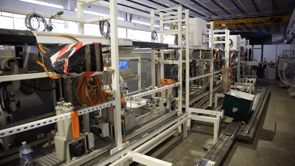 Sur cette plateforme d’essai de 420 m² sont installés plusieurs équipements pré-industriels, notamment les lignes de dépôt électrochimique de cellules CIGS de tailles respectives 30×60 cm2 et 60×120 cm2 (Image 4). Grâce à l’Université Paris Saclay et l’Unité de recherche CNRS IPVF, SOYPV peut aujourd’hui commencer à se développer au sein de locaux historiques : ceux de l’un des premiers accélérateurs linéaires de particules installés en France.